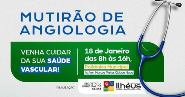 O objetivo é identificar, prevenir e tratar problemas relacionados à circulação sanguínea A Prefeitura de Ilhéus, por meio da Secretaria Municipal de Saúde, convida a população para participar do Mutirão de Saúde de Angiologia, marcado para este sábado, 18 de janeiro, das 08h às 16h, na Policlínica Municipal de Ilhéus, ...Prefeitura de Ilhéus promove limpeza nas praias e reforça compromisso ambiental