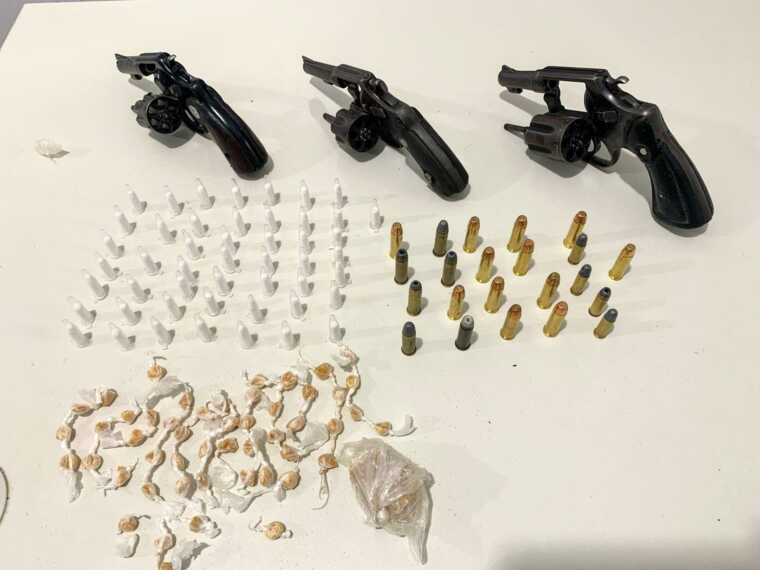 A operação ocorreu próximo ao campo do Arnaldo, onde três homens foram abordados e com eles encontrados dois revólveres calibre .38, um revólver calibre .32, 50 pedras pequenas de crack e uma pedra maior da mesma substância, pesando aproximadamente 23 gramas.