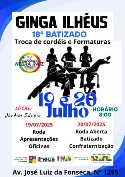 O evento conta com o apoio da Secretaria Municipal de Cultura de Ilhéus, do Ministério da Cultura e do Governo Federal – União e Reconstrução, e do PNAB (Política Nacional Aldir Blanc).