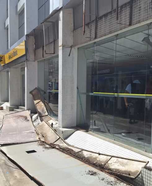 Estrutura da fachada de agência do Banco do Brasil desaba e por pouco não atinge trabalhadora