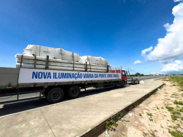 Novos postes chegam em Ilhéus para requalificação da Ponte Jorge Amado